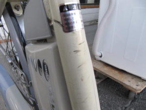 リサイクルshopアールワン買取で綺麗にして販売をしています。当たり前の様で、綺麗さが他店では追従出来ない 技の2コマを今回ご紹介~~”(-“”-)”じゃ~~ぁ~ 先ず❶ハンドルのグリップ部の黒い斑点です。洗剤では絶対に取る事が出来ません~~ ❷靴などのゴムが接触したフレームの黒く擦れた部分。これまた洗剤などでは取ることはできません。 この2点を他店と、見比べて頂くだけで自転車全体の違いがお分かりいただけると思います。