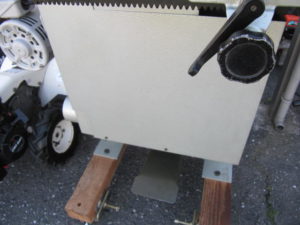 木材の挽き割り、挽き回し作業ができる1.5kW切れ味の良いステライト刃を装備。・ブレーキ付。集じん機を使用すれば粉じんのない作業ができる。