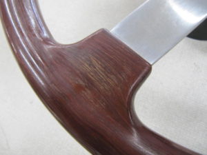 ●ナルディウッドと比較して、スポークはより無垢の輝きがあり、ウッドは色合いが、ローズウッド的で、 重量感があります。 |