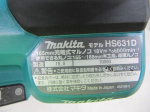🌲Makita 18V 充電式マルノコ 【電動工具高価買取アールワン】 2019/7/25 工具 ●アールワン本日の買取商品紹介 ■美品! Makita 18V 充電式マルノコ HS631D 本体のみ マキタ ☆本体 ◎当店ランク/本体:(A) S:新品 A:美品 B:普通の中古 C:傷の多い物 ☆状態と致しましては、外観上部で、グリップやモーター側側面も置き傷は少なく、ノコ刃カバーに少し点傷がある位で、イレギュラー的な落とし傷などもありません。本体底面、歪みなど無く綺麗な状態です。 アールワンでは大工道具、電動工具をトコトン高価買取致しています!!ジャンジャンお持ちいただき査定をさせて下さい!!