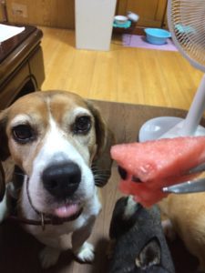 🐕今日のそうすけ店長 暑さにも負けず頑張っています!?買取アールワンの看板犬 2019/8/1 今日のそうすけ店長 8月に入り、買取専門アールワンの看板犬(買取ハンターそうすけ)をはじめ家電担当副店長のゴエモンも少し、ばてていましたので、栄養補給に🍉スイカ~~♬(‘ω’)ノ 水遊び&ボディーシャンプーでお客様に良い香りでお迎えいたします~~♬