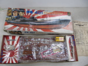 プラモデル当時物の買取品です~~♬(‘ω’)ノ 2mごとに浮き沈みする などとコピーがございますが、 こんなコピーを聞くと今の年齢になってもそそられますね~~ 僕が小学校低学年のころ、この自動で浮いてくる潜水艦(メーカーや品名不明)を小学校の中にある8メートルほどの池で上級生が試しながら遊んでいまして、二度と浮くことがないままあら、ら~、となったこと思い出します。今から45年ほど前でしょうかね~~♬(‘ω’)ノ(笑)