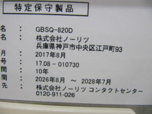 さて当店買取販売の美品!ノーリツ お風呂ガス給湯器・追い炊き機能付・シャワー付 GBSQ-820D (左浴槽用/本品は右側に設置。)