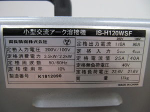 ■美品!IKURA アークファン IS-H120WSF 100V/200V兼用 溶接機 【電動工具買取アールワン】