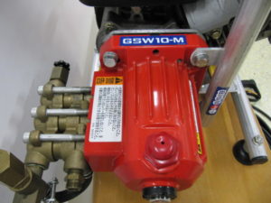 丸山 エンジン式 高圧洗浄機 GSW10-M 【農機具買取アールワン】 2020/3/5 2020/3/8 工具, 農機具・建設機器etc ●アールワン本日の買取紹介 おかげさまで販売終了!(^^)! ■程度良 丸山製作所 エンジン式 高圧洗浄機 GSW10-M OIL交換後発送 店舗渡し可能 ●付属品・・・・ガン・ガン用ホース・バキュームホース 自吸式高圧タイプ ●最高圧力: 10MPa ●吐出量: 7L/分 ○エンジン: 三菱4サイクル 1.3KW(定格) ★商品ページ→ここをクリック ◎当店ランク/本体:(B) S:新品 A:美品 B:普通の中古 C:傷の多い物 ☆状態と致しましては、新品購入後、4年ほど使用で、主に農機具「トラクター」の洗浄に年1、2度のペースで使用したもので、特にサビの出やすい部分、マフラーのヒートプレートなどもサビが、少なくフレームはアルミ製で全体的に綺麗です。 ●使用時の水は水道より貯水タンクに入れた水を使用してあり、汚泥水などは一切使用されていません。 ●当店でも動作確認で、実際に使用し点検をした後にガソリンタンクと、キャブより燃料を全て抜き、キャブフィルターなど内部も綺麗にした後に出品しています。 ●ご購入後も直ぐにお使い頂けるようエンジン・コンプレッサー各OILを交換後出荷いたしますので安心して長くお使いいただけます。 ●点検、メンテナンス終了後は下記綺麗な状態での販売。