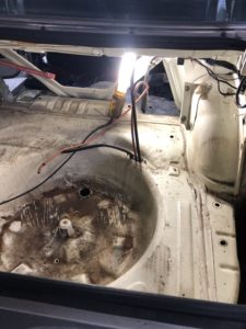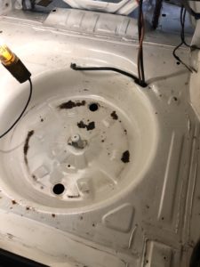 トランク内の清掃後、サビてる所をサビ取りサビ止め、下処理サフェーサーが完了。仕上げの上塗りでトランク内完成⤴(‘ω’)ノ