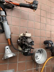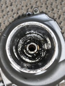 さて本日ご紹介はゼノアのプロ用草刈り機の私有りのご紹介です。 排気量も大きく、馬力&マックス回転数も高い販売価格も74,000円程でお高い商品です。 クラッチハウジングの固まりによる刃が回らなくなっています~!( 一一) どおやら、素人さんでMAXスロットルで、負荷を掛けずにぶん回した事によるベアリングは損と思われます。早速カバーを外してベアリングを救出したいと思います。 ベアリングを見たところなんともなく写真のサークリップがか見込んでいたことが今回の原因だった~~!(^^)! サークリップをきちんと溝にはめ込み、グリースを塗って今回の修理の完了です~( ^)o(^ )