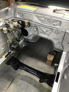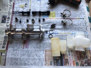 さて本日は塗装の終わったフロント足回りの組付けです。ブッシュ類は全て純正取り付けとなります。ブレーキマスターは全て分解しOH・ファーン・ワイパーモーターのOHなどです。