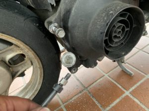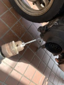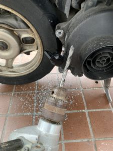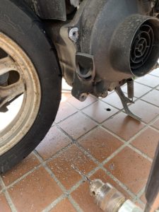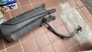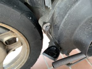さて本日は、以前購入いただいたスクーターが、底打ちをしてしまい、マフラーの突き上げによる真っ二つに折れてしまい、又重なることに、ボルトがねじ切れてしまったものを引き上げてまいりまして、当店で、修理交換です。(‘ω’)ノ リサイクルショップで下記などの修理するところはたぶん全国でも少ないと思います!(^^)! ※ミニ耕運機の修理や、爪の交換、OIL交換など、購入品は行っています。