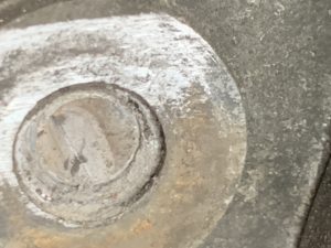 ●1、エンジンケースに残ったボルトの頭がない状態~これではマフラーを新たに取り付ける事が不可能です⤵((+_+))