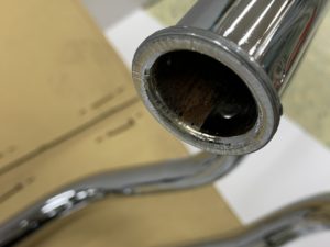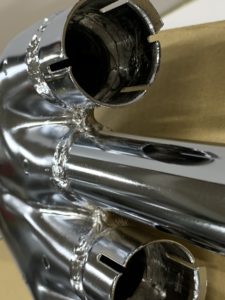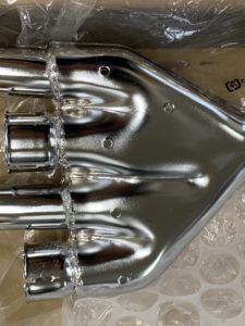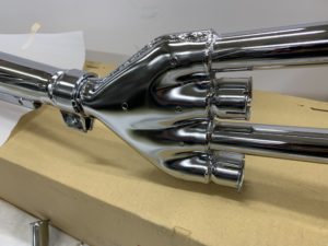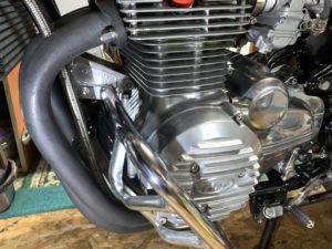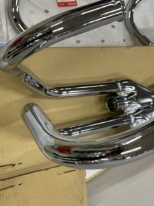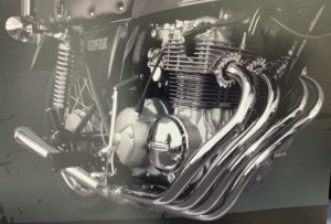 発売以来、45年経過したバイクのパーツでもコのマフラーと言う部品自体は非常~~~に珍しく、流れるような曲線を描くフロントパイプを車両の左前方より眺めは最高なアングルになります。