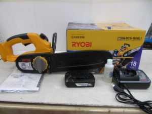 ■美品 リョービ 充電式チェンソー 18V BCS-1800L1 ☆状態と致しましては、ワンオーナー品で、大きなエンジンチェンソーも所有で枝打ち用として購入したものでしたが、エンジンとは違い思っていたより着る時間がかかる為売却品です。刃の切れ味などを含め機能操作も当店で確認を致しましたが問題ないものです。