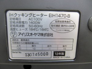 🍳美品!アイリス EIH1470-B IHクッキングヒーター2013年製【家電買取アールワン】