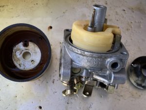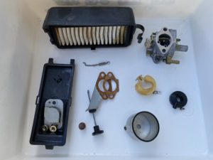 早速キャブを取りまして、中を点検して清掃!仮組で、オーバーフローになり、もう一度清掃や点検、確認後ようやくきちんとした状態になりましたので、自信をもって販売スタートです!