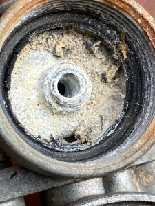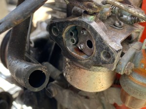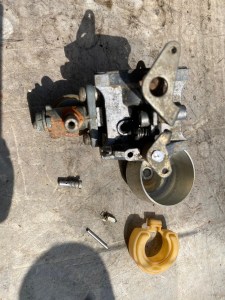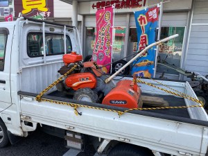★アールワンは農機具を修理もしていますよ~~!(^^)! ☆さて本日は、飯塚市よりエンジンが掛からなくなり畑に、しょうがなく動かないまま放置の耕運機を引き上げて修理、整備、部品交換です~~~~!(^^)! そうすけ店長(コーギー犬)&ゴエモン(ビーグル)、動向にて(笑)引き上げ完了! ❶キャブ/点火系チェック(エンジン不動原因) ❷シフトレバーのゲートにうまく入らない状態 ❸駆動ベルトがあっておらず確認交換 おまけでプラスチックカバーの補修 写真のエンジンプーリーが開けたらボルトがご覧の様に緩んでいました😅 〇何人の手に渡ったのであろう以前の所有者がキャブを開けて弄りまくっているようで、フロートチャンバー室は下部が腐食しデボットがありガソリン漏れの一歩手前!ニードルジェットはマイナスネジ部は半円割れてチョーク・バルブのネジ山はこじ開けようとしたのかつぶれています。 あらら、、、。です(^^;) ●こお言った農機具のキャブはニードル調整のためのフロート軸調整が全てプラスチック製の為オーバーフローが起こりやすく、後々の問題を克服できないのが難点です。 ◎今回、修理、整備、3h30m・・・OH・vベルト純正交換(純正新品だったら部品だけで7,000円位します(^^;))・キャブフロートガスケット18,500円(税込)+引き上げと配達で2,500円す!(^^)!