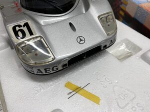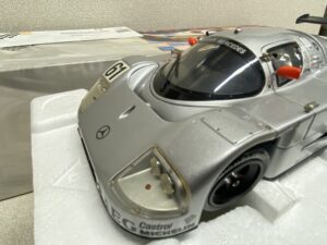 | こんにちは!!本日ご紹介は、、、、。■京商 エグゾト製 1/18 ザウバー メルセデス C9 61 RLG181915 ●●付属品・・・・配送固定のネジ・部品や、ホイール用工具など・脱着可のアンテナ2本・元箱など ◎当店ランク/本体:(A) S:新品 A:美品 B:普通の中古 C:傷の多い物 ◎点検、確認済。 ☆状態と致しましては、コレクターさんからの買取品で新品購入のワンオーナー品で、展示はされていたようですが、ホコリや接触傷はありません。ショーケース等に置いていたようです。 ※アンテナは1本支点が無いようです。