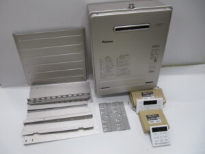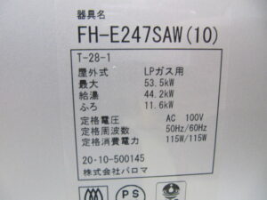 | ■【 LPガス】パロマ エコジョーズ オート 追い炊き 24号給湯器 FH-E247SAW(10) 20年製 7カ月使用! ●製造年:2020.10月 ●付属品: 台所リモコン(未使用)、浴室リモコン、各カバー ★商品ページ→ここをクリック ◎当店ランク/本体:(A)リモコン:(S/A) S:新品 A:美品 B:普通の中古 C:傷の多い物 ◎点検、確認済。 ☆状態と致しましては、新築住宅入居から(2021.2月)使用し、10月にオール電化とともに取り外しをしたもので約7カ月使用されたものです。 画像⑨リモコンで、浴室用は光って見えるのは表面全体にフイルムが貼ったままです。台所用は未使用。 本体も雨風が当たらない状態でのコンディションはとても良いです。 当店で、購入後直ぐにお使い頂けるように水抜きをして、内部維持しております。その際に画像⑤で、水フィルターも綺麗で、不純物などがある場合は出来る限り綺麗に除去を致しております。各部チェックし、外観なども綺麗にした状態で販売を開始しております。サビと言えるほどの付着も使用期間が短くありません。