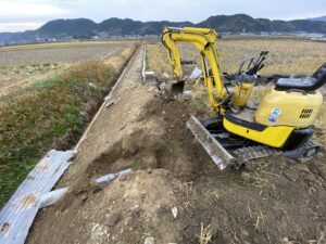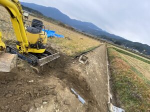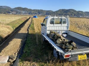 アールワンの店長の朝は、、、。The田んぼ ブログ 2023/12/4 2026/3/18 田んぼ アールワンの店長の朝は、、、。 仕事前の毎日、天気のいい、雨の降らない日はほぼ毎日田んぼに出動です⤴ お米を作ると言う事は、耕して、田植えをして、稲刈りして収穫をする それ以外の事も色々とありますね 今日は最近は大雨が多く、U字溝上まで水かさが上がり、法面がけずれだしています!! これを人力で手直し開始!