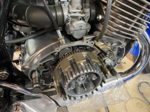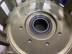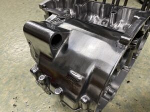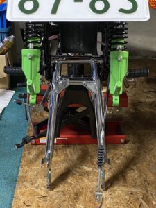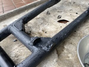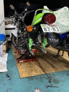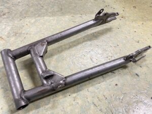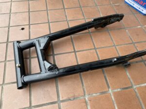 スイングアームは塗装をこのようにはく離して➡メッキ加工へ