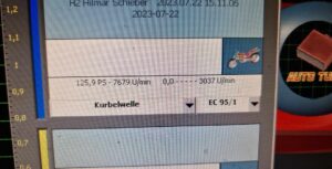 本品の制作者が手掛けた750SSチューンエンジンでクランク軸での馬力測定125.9PS/7,679rpm(2023.7.22)