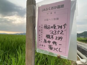 場合によっては紐を田んぼの両サイドで2人持ち張った紐で、穂先をこすって同じ方向に走りります!