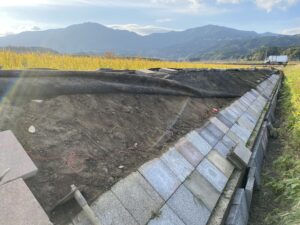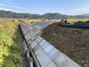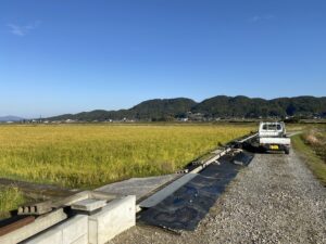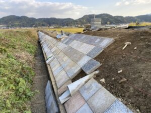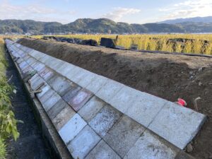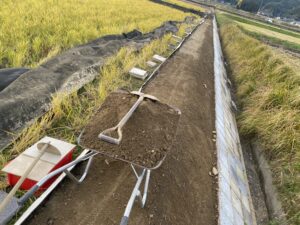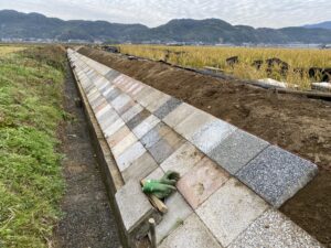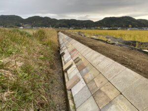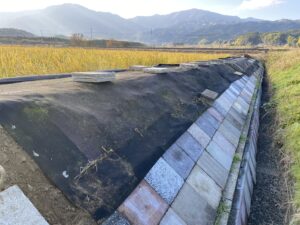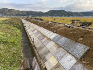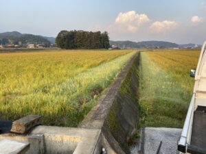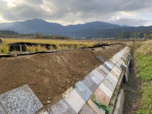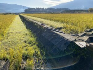 アールワンの店長の朝は、、、。The田んぼ ブログ 2024/12/11 2026/3/25 田んぼ アールワンの店長の朝は、、、。 仕事前の毎日、天気のいい、雨の降らない日はほぼ田んぼに毎日出動です⤴ お米を作ると言う事は、耕して、田植えをして、稲刈りして収穫をする それ以外の事も色々とありますね 今日は最近は大雨が多く、U字溝上まで水かさが上がり、法面がけずれだしています!! これを人力で手直し開始2023年11月~初めて 2シーズン目突入 2024年12月1日~連日 ブロックとの闘い(笑) 2枚目の田んぼの防草シートを外して3列目から