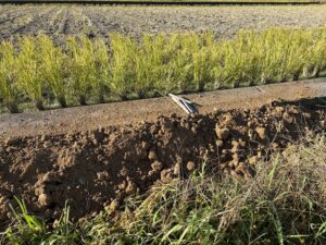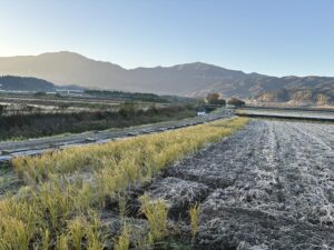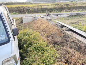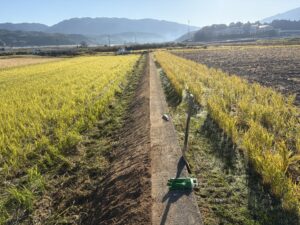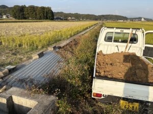 アールワンの店長の朝は、、、。The田んぼ ブログ 2025年11月 2025/11/21 2026/3/30 田んぼ アールワンの店長の朝は、、、。 仕事前の毎日、天気のいい、雨の降らない日はほぼ田んぼに毎日出動です⤴ お米を作ると言う事は、耕して、田植えをして、稲刈りして収穫をする それ以外の事も色々とありますね 今日は最近は大雨が多く、U字溝上まで水かさが上がり、法面がけずれだしています!! これを人力で手直し開始2023年11月~初めて 3シーズン目 冬 2025年11月21日 さて~田んぼの中に軽トラックも入れる時期になり お隣さんの畦法面の整備から