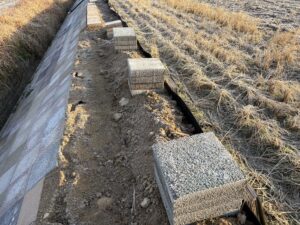 今日は最近は大雨が多く、U字溝上まで水かさが上がり、法面がけずれだしています!!