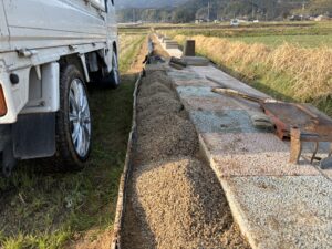 川に行って何をするのか?? 川砂をトラックで運んで、、、。