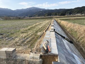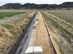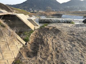 今日は最近は大雨が多く、U字溝上まで水かさが上がり、法面がけずれだしています!!