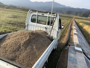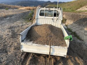 川に行って何をするのか?? 川砂をトラックで運んで、、、。