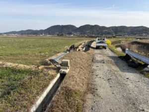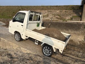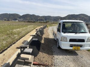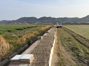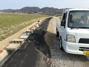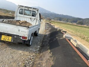 アールワンの店長の朝は、、、。The田んぼ ブログ 2026年3月中旬 2026/3/18 2026/4/3 田んぼ アールワンの店長の朝は、、、。 仕事前の毎日、天気のいい、雨の降らない日はほぼ田んぼに毎日出動です⤴ お米を作ると言う事は、耕して、田植えをして、稲刈りして収穫をする それ以外の事も色々とありますね 今日は最近は大雨が多く、U字溝上まで水かさが上がり、法面がけずれだしています!! これを人力で手直し開始2023年11月~初めて 4シーズン目 2026年3月14日~17日~18日 平面ブロック面&あぜ道横の川砂運び 軽トラ(いぼる)