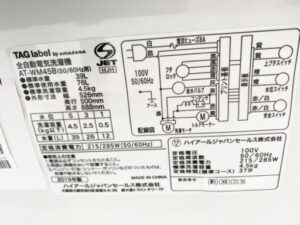 ●ハイアール4.5kg 2019年製